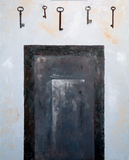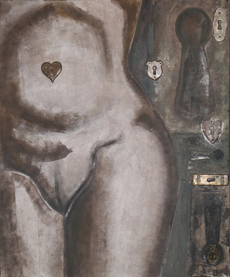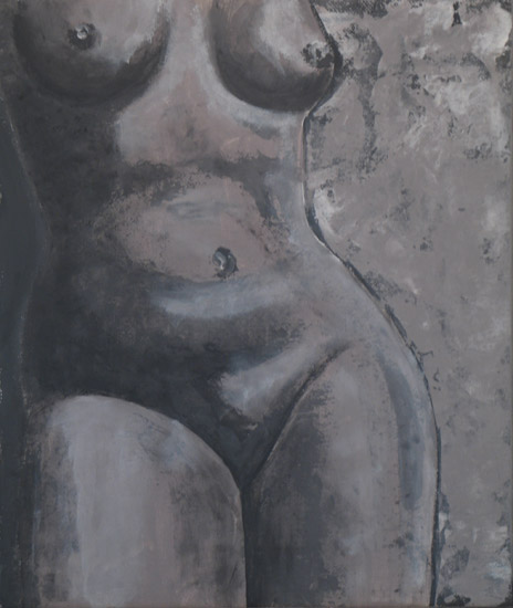 Tale compressione adduce, infine, alla rimozione dell’immagine corporea, tuttavia si individua nella gamma cromatica, protesa tra gradazioni di verdi e nuance di marroni, percorsa da velate tonalità di grigi, il trait d’union che accorda la strategia delle apparenze nel magma terroso della materia onirica. La strategia della seduzione come occultamento del corpo, che pare caratterizzare questa fase del lavoro di Gianesi, trasforma la superficie pittorica, talché il dipinto non risulta più assimilabile ad un muro, quanto piuttosto ad un bronzo ossidato.